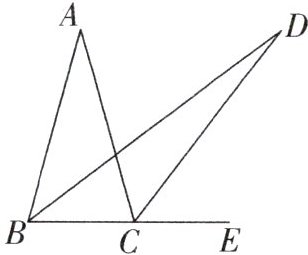 1. 如图,在$\triangle ABC$中,$E为BC$延长线上一点,$\angle ABC与\angle ACE的平分线相交于点D$,$\angle D= 15^{\circ}$,则$\angle A$的度数为(