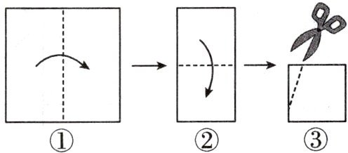 6. 将一张正方形纸片, 按如图中的步骤①②, 沿虚线对折两次, 然后沿③中的虚线剪去一个角, 展开铺平后的图形是 (