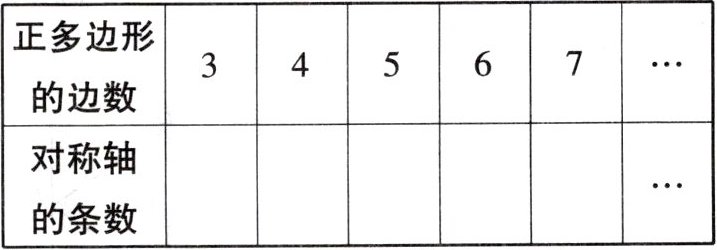 7. 试画出下列正多边形的所有对称轴, 并完成表格.