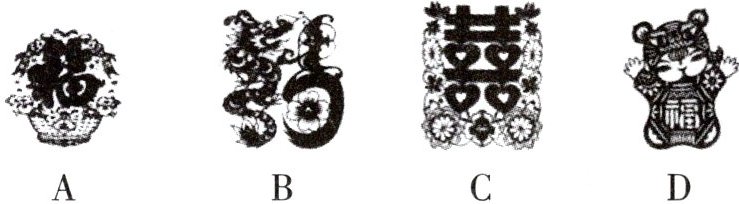 1. (教材 P99 习题 T1 改编) 剪纸在民俗活动中占有重要位置, 随着农历新年的日益临近, 人们用剪纸的形式欢庆春节. 下列四个剪纸图案为轴对称图形的是 (