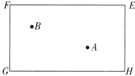 11. 如图,四边形EFGH是一个长方形台球桌面,有白、黑两球分别位于A,B两点的位置上. 试问,怎样撞击白球A,才能使白球A先碰撞台边GH,再碰撞FG,经两次反弹后再击中黑球B?(保留作图痕迹,写明作法,并将白球A的移动路线画在图上)