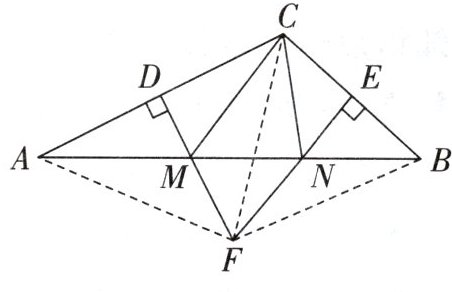 10. 如图,在$ \triangle ABC $中,DM,EN分别垂直平分AC和BC,交AB于M,N两点,DM与EN相交于点F.