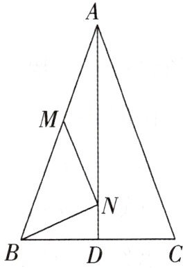 10. 如图,在 $ \triangle ABC $ 中,$ \angle ABC = 70^{\circ} $,$ AB = AC = 8 $,$ D $ 为 $ BC $ 中点,点 $ N $ 在线段 $ AD $ 上,$ NM // AC $ 交 $ AB $ 于点 $ M $,$ BN = 3 $.