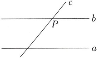 5. 用反证法证明命题:“如果 $a // b$,$a // c$,那么 $b // c$”。如图,若假设 $b$ 与 $c$ 相交于点 $P$,则需要推出的矛盾为(