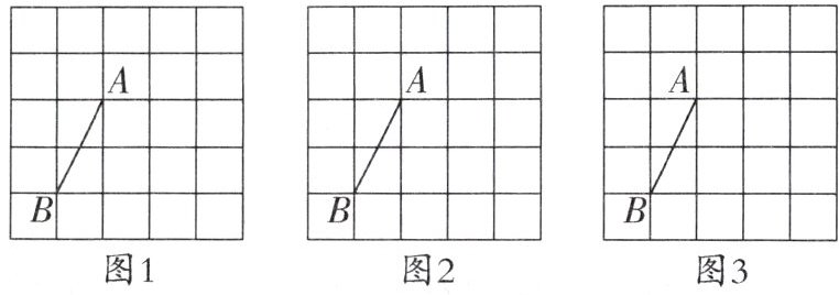 7. 图 1、图 2、图 3 均是 $ 5 × 5 $ 的正方形网格,每个小正方形的顶点称为格点,线段 AB 的端点均在格点上. 在图 1、图 2、图 3 中以 AB 为边各画一个等腰三角形,使其依次为锐角三角形、直角三角形、钝角三角形,且所画三角形的顶点均在格点上.