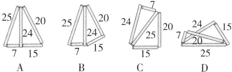 8. 五根小木棒,其长度分别为 7,15,20,24,25,现将它们摆成两个直角三角形,如图,其中正确的是(
