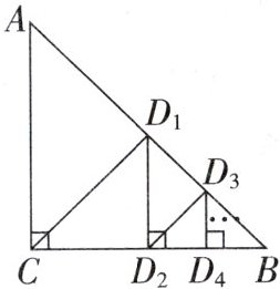 8. 我们已经学过“等腰三角形顶角的平分线,底边上的中线,底边上的高线重合”. 如图,在 $ \triangle ABC $ 中,$ \angle ACB = 90° $,$ AC = BC = 2 $,过点 $ C $ 作 $ CD_1 \perp AB $ 交 $ AB $ 于点 $ D_1 $,过点 $ D_1 $ 作 $ D_1D_2 \perp BC $ 交 $ BC $ 于点 $ D_2 $,过点 $ D_2 $ 作 $ D_2D_3 \perp AB $ 交 $ AB $ 于点 $ D_3 $,按照这个规律,那么 $ D_{2024}D_{2025} $ 的值为______.