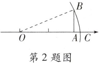 2. 如图,点 $ A $ 在数轴上所表示的数为 $ 2 $,$ AB \perp OA $ 于点 $ A $,且 $ AB = 1 $,以点 $ O $ 为圆心,$ OB $ 的长为半径作弧,交数轴于点 $ C $,那么点 $ C $ 表示的数是