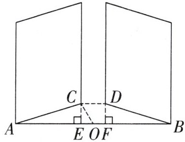 变式1.2 数学文化《九章算术》是古代东方数学代表作,书中记载:今有开门去阃(kǔn)(门槛)一尺,不合四寸,问门广几何?其大意:如图,推开双门(大小相同),双门间隙$CD = 4$寸,点C、点D与门槛AB的距离$CE = DF = 1$尺(1尺 = 10寸),O是EF的中点,连接CO.