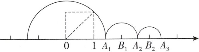 变式3.3 如图,通过画边长为1的正方形,就能准确的把$\sqrt{2}表示在数轴上点A_{1}$处,记$A_{1}右侧最近的整数点为B_{1}$,以点$B_{1}$为圆心,$A_{1}B_{1}$为半径画半圆,交数轴于点$A_{2}$,记$A_{2}右侧最近的整数点为B_{2}$,以点$B_{2}$为圆心,$A_{2}B_{2}$为半径画半圆,交数轴于点$A_{3}$,如此继续,则$A_{2025}B_{2025}$的长为(