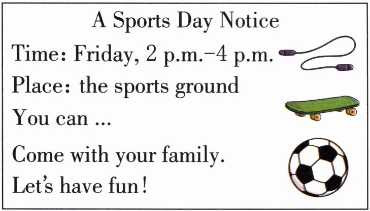 ) 4. We will(将) have fun there.