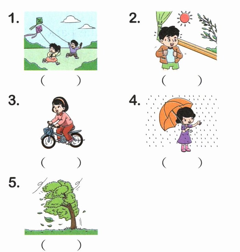 1. cold 2. windy 解析:根据 go out and fly a kite 可判断,适合放风筝的天气应该是有风的。 3. sunny 4. cloudy
