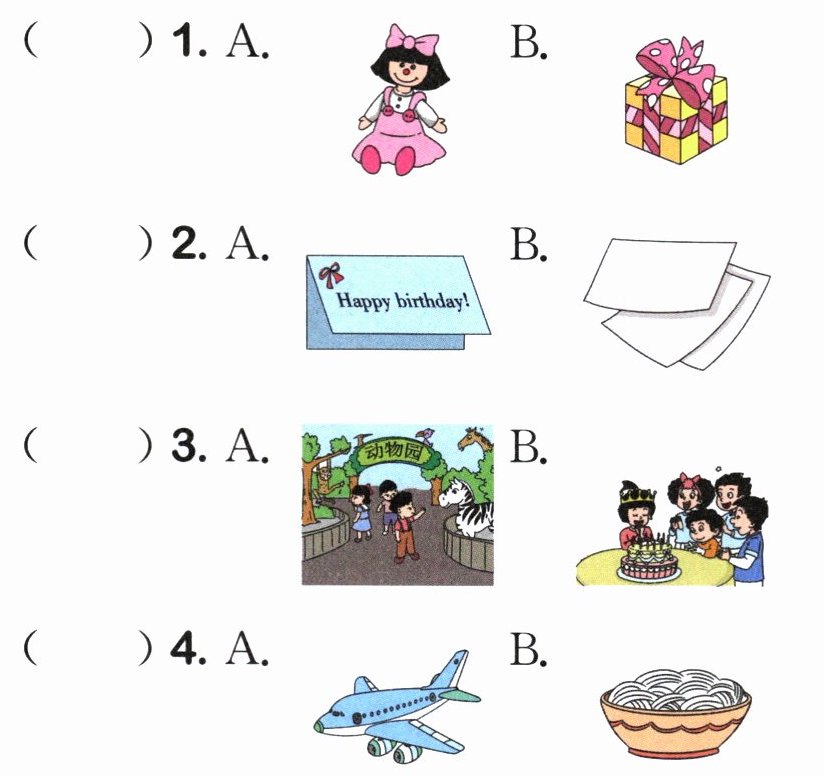 )3. 你想介绍自己在生日那天做的事情,可以说:A. I have a party.