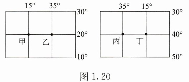B【解析】读图分析可知,图中乙地的经纬度为(40°N,120°E),可判定(40°N,116°E)位于乙地附近。故选 B。