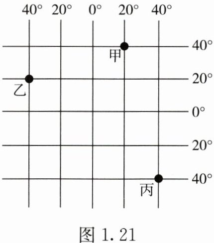读经纬网示意图(图 1.21),完成 1~2 题。