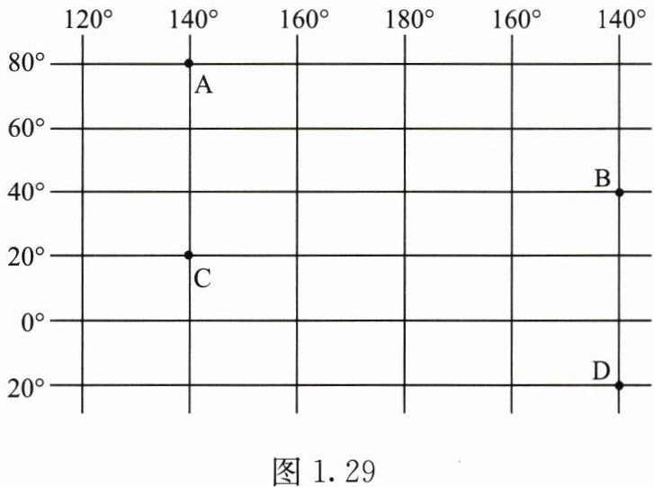 (1)A(80°N,140°E) B(40°N,140°W) C(20°N,140°E) D(20°S,140°W) (2)正北 东北 A、B、C D A、C B、D C、D A B A