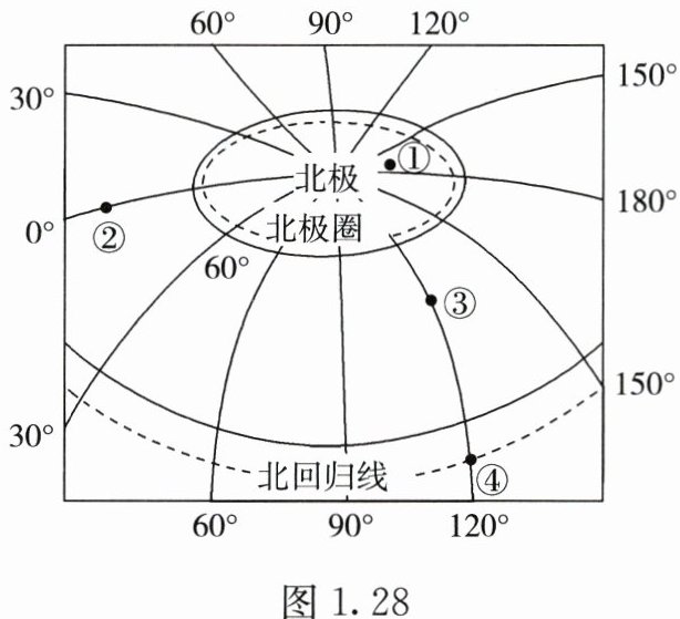 D. ④$(40^{\circ}N,90^{\circ}W)$