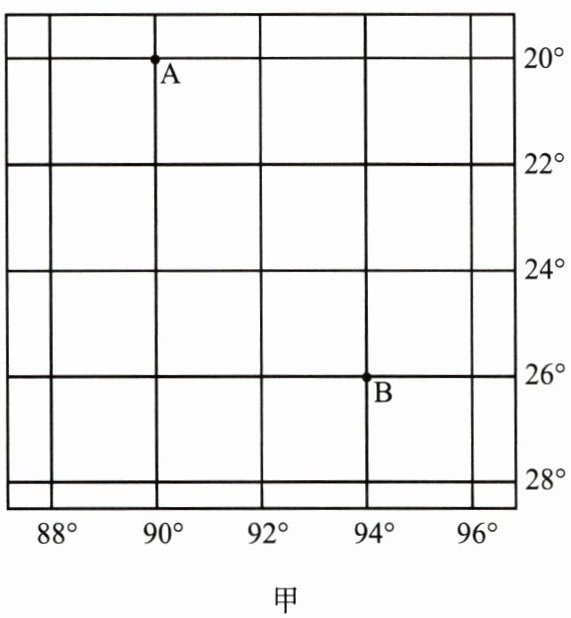 (2) 判断甲图中B点位于南、北半球中的