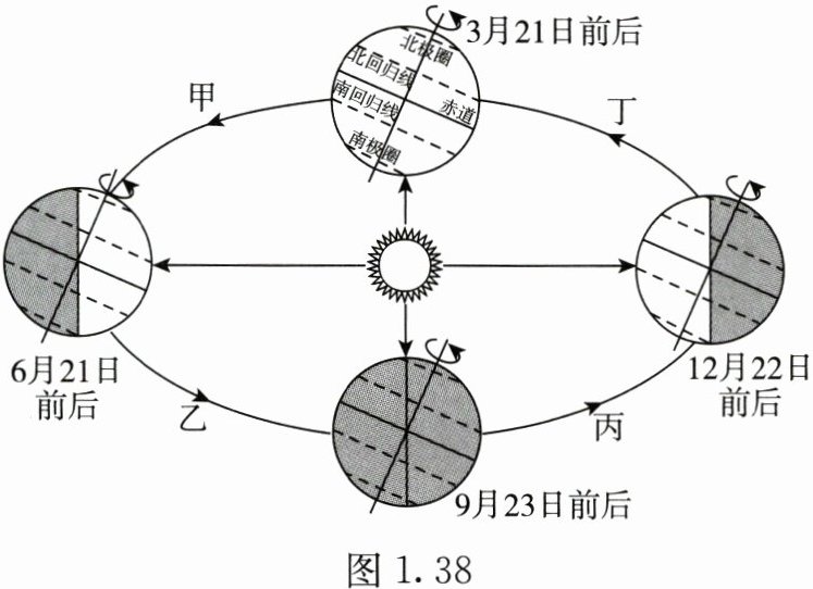 (2023·四川甘孜州 改编)第31届世界大学生夏季运动会于2023年7月28日至8月8日在成都举办。读地球公转示意图(图1.38),完成5~6题。