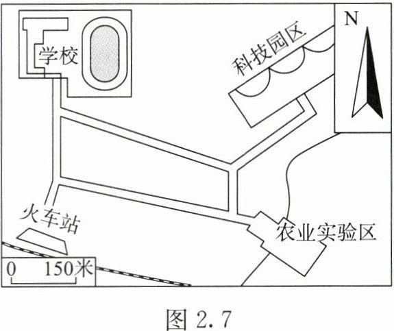 生活中常常利用地图,请你仔细读图2.7,完成7~8题。