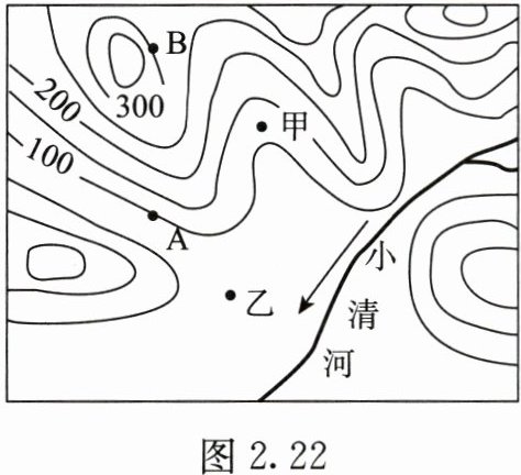 某中学地理兴趣小组到野外考察,考虑到暴雨可能引发山洪而产生危险,老师要求同学们不准在甲地搭帐篷宿营。读图2.22(单位:米),完成4~5题。