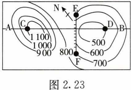 图2.23是某地等高线地形图(单位:米)。读图,完成6~7题。