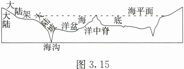 马里亚纳海沟深达 11 034 米,号称“世界第四极”。近年来,中国的万米载人潜水器“奋斗者号”在马里亚纳海沟多次下潜深度突破 10 000 米,屡创载人深潜的新纪录。图 3.15 为海底地形剖面图。读图,完成 1~2 题。