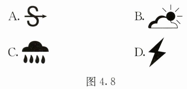 3. 小黄和小王同学准备周末去公园野餐,图4.8天气符号所表示的天气最适宜郊游的是(