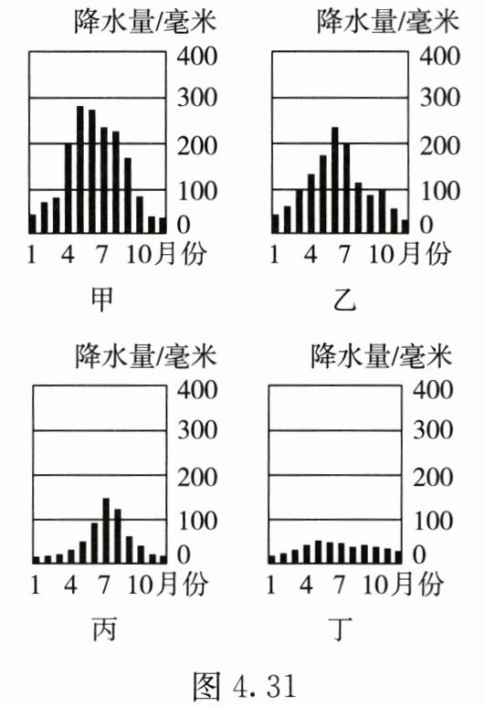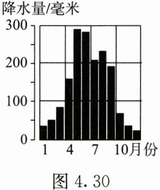 读某地各月降水量柱状图(图4.30),完成3~4题。