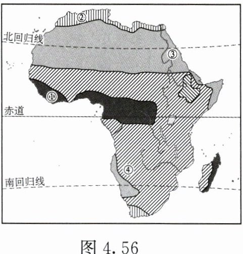 4. 小曹7月随父母去非洲旅游,到了图4.56所示的四个地点,四地中(
