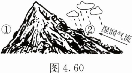 1. 图 4.60 中②地降水量多于①地的影响因素是(