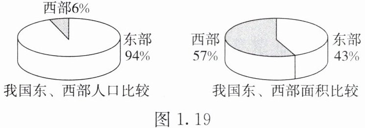 图 1.19 为我国东、西部人口和面积对比图。据此完成 5~6 题。
