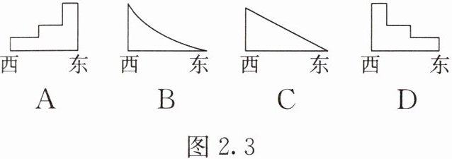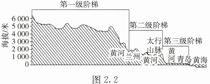 地势是地表高低起伏的总趋势。读沿 $36^{\circ}N$ 纬线的地形剖面示意图(图 2.2),完成 1~2 题。