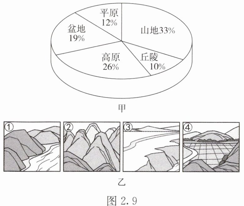 4. 我国的五种地形类型中,图乙未体现出来的是(