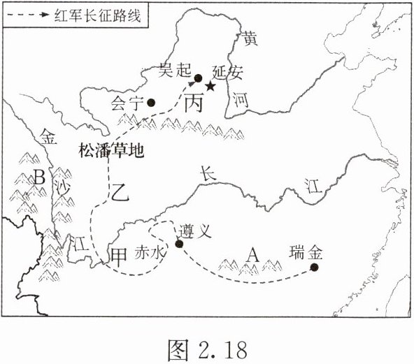 级阶梯。(2)“红军不怕远征难”,红军依次经过了甲