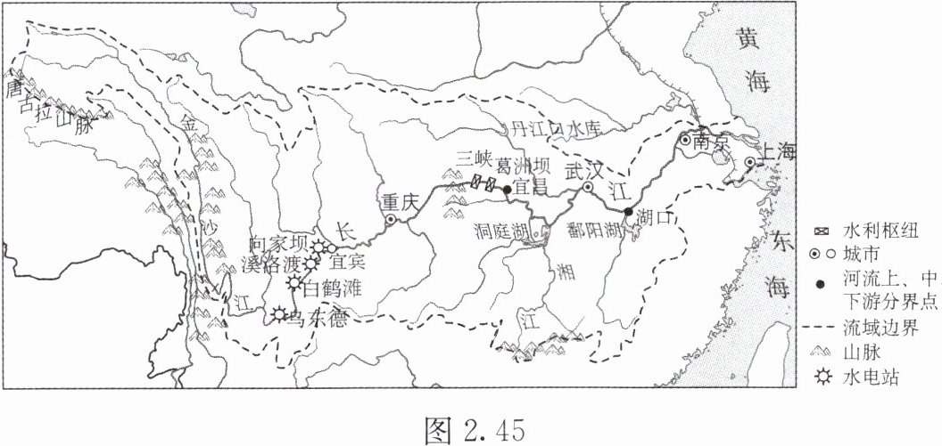 读长江流域分布示意图(图 2.45),完成 1~2 题。