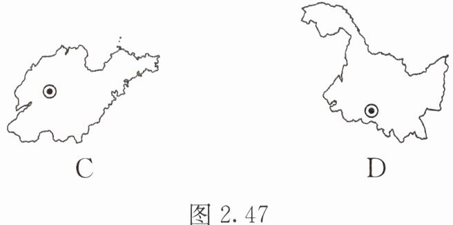 3. 图 2.47 所示的省级行政区中,长江干流流经的是(