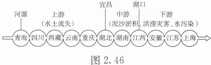 “绿色发展,生态优先”是推动长江经济带发展的首要任务。读长江干流各河段主要生态环境问题示意图(图 2.46),完成 3~4 题。