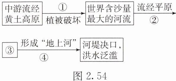 某中学地理学习小组绘制了一幅框图(图 2.54),探究某河流的忧患及其治理。据此完成 1~3 题。