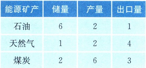 中国海关总署 2025 年 1 月 13 日发布数据显示,中俄 2024 年的双边贸易额再度创下新高,达到了 2448.19 亿美元,同比增长 $1.9\%$。近年来两国在能源等多个方面的经贸合作不断加深。表 3.5 示意俄罗斯石油、天然气、煤炭的储量、产量、出口量在世界上的位次(2024 年)。据此完成 4~5 题。