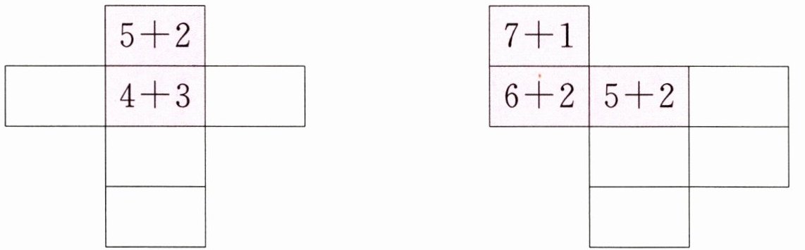 (按行填)$5+3$ $3+3$ $3+4$ $2+5$ $4+2$ $4+3$