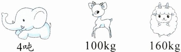 (2) 上面三种动物中,最重的比最轻的重多少千克?