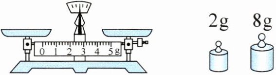 示例:先把 2g 和 8g 的砝码分别放在天平两边的托盘上,然后向放有 2g 砝码的托盘中添加白糖,直到天平平衡为止,这时所称的白糖就是 6g。