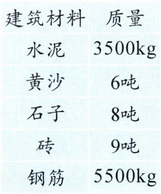 5. 李师傅要用一辆准载 8 吨的卡车运输如下建筑材料。要使运输次数最少,该怎样运?请你帮忙设计一个运输方案。