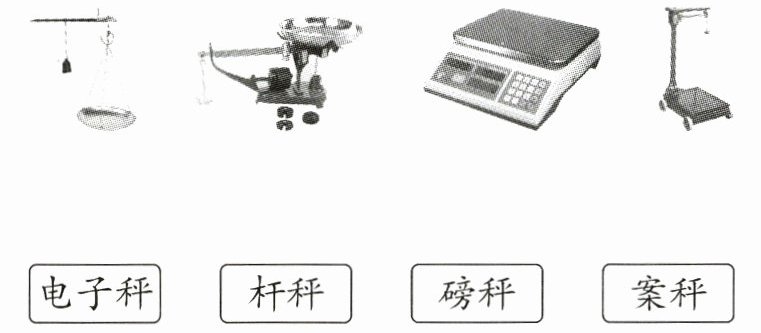 1. 下面是日常生活中常用来测质量的工具,认一认,连一连。