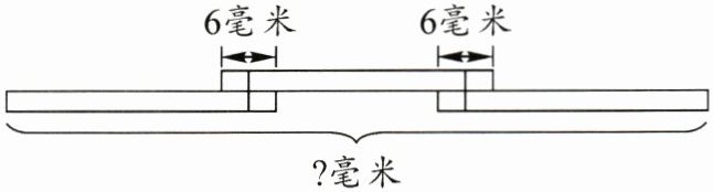 6. 木工师傅现在需要把三根长30毫米的木条钉在一起(如图),钉在一起重叠部分的长度为6毫米,钉成的木条总长多少毫米?