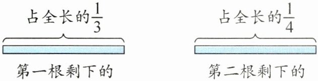7. 木工师傅有两根木棒,分别用过一些后剩下的部分同样长(如图)。原来两根木棒哪根长?
