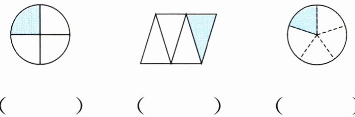 2. 下面阴影部分用分数表示正确的画“√”,表示错误的画“×”。