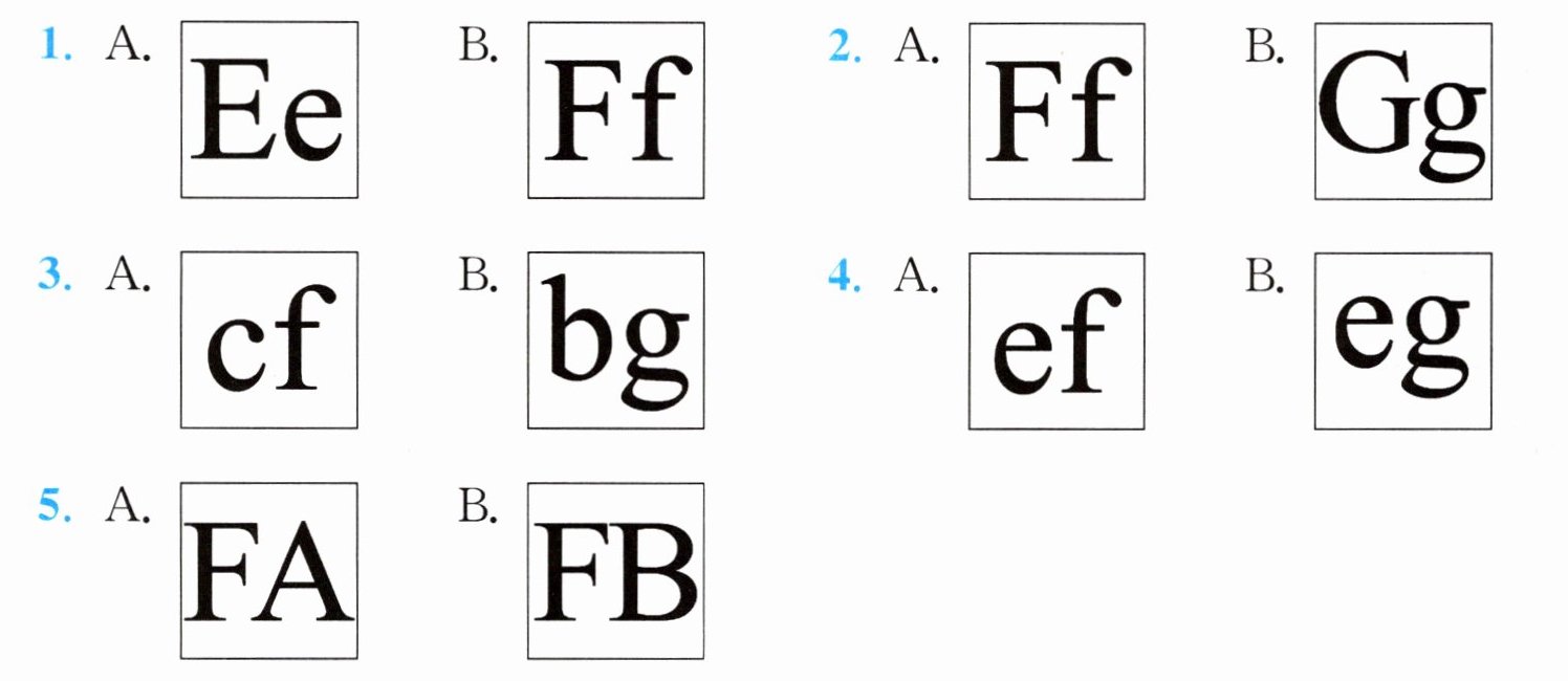 1. E 2. Ee;Gg 3. Cc 4. b 5. d;f 6. d e