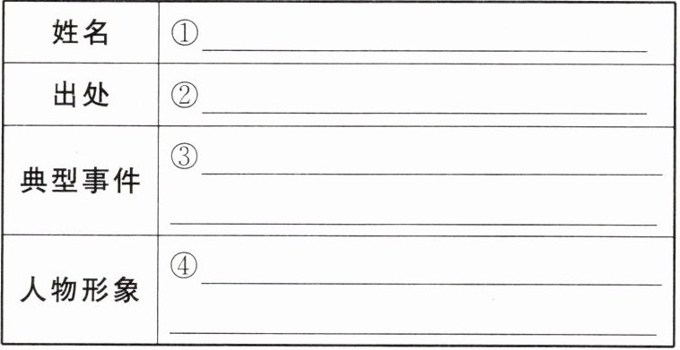 (2)【活动二:理小说情节】梳理读过的小说篇目,用卡片的形式为小说中的主要人物建立档案,内容包括姓名、出处、典型事件、分析人物形象。